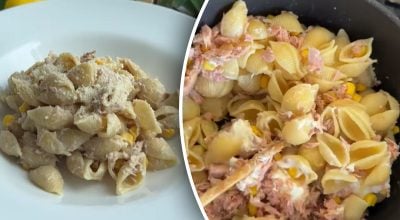 Aby przygotować szybki obiad, należy zacząć od ugotowania makaronu w osolonej wodzie. Gdy będzie gotowy, dodać łyżkę serka śmietankowego, puszkę tuńczyka w sosie własnym i kukurydzę do smaku.