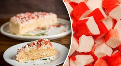 Tort przekąskowy z paluszkami krabowymi – przepis / kolaż: My, foto: depositphotos.com/