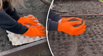 Do idealnego wysiewu marchwi można użyć zwykłych tacek na jajka. Za ich pomocą można szybko i bez wysiłku wykonać idealne otwory w ziemi, a następnie umieścić po jednym nasionku w każdym otworze.