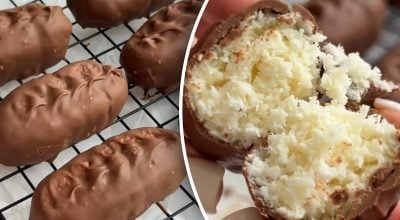 Dzieci będą prosić o więcej i więcej. Link skopiowany Przepis na cukierki Bounty / Kolaż: My, zdjęcie: zrzut ekranu z filmu Domowe cukierki czekoladowe
